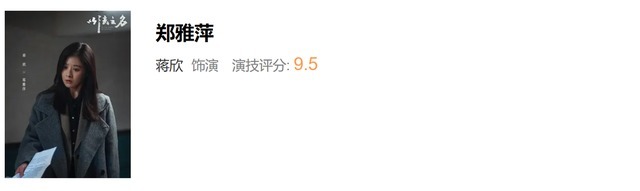 而蒋欣以9.5分的演技评分名挨次三,莫得拿到满分,我念念是因为变装“器具东说念主”属性阐扬空间不大拖了后腿。