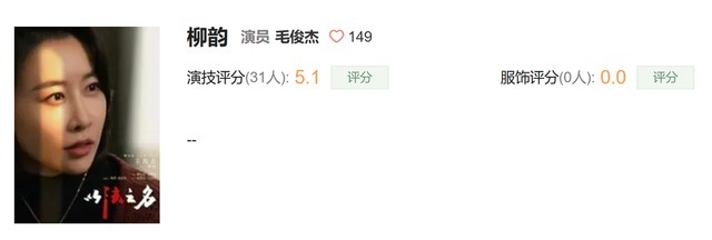 东说念主设不讨喜,演技也挽不回口碑,毛俊杰以5.1分的断崖式演技评分名次倒数第一预念念之中。