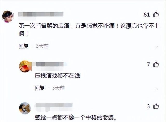 有场戏是玉成柔来家中试探,于和伟言笑间化解危机。 曾黎却像配景板相似呆坐一旁,连倒茶的看成皆僵硬得像在摆拍。 网友戏弄:“这哪是次长夫东说念主,分明是AI机器东说念主。”