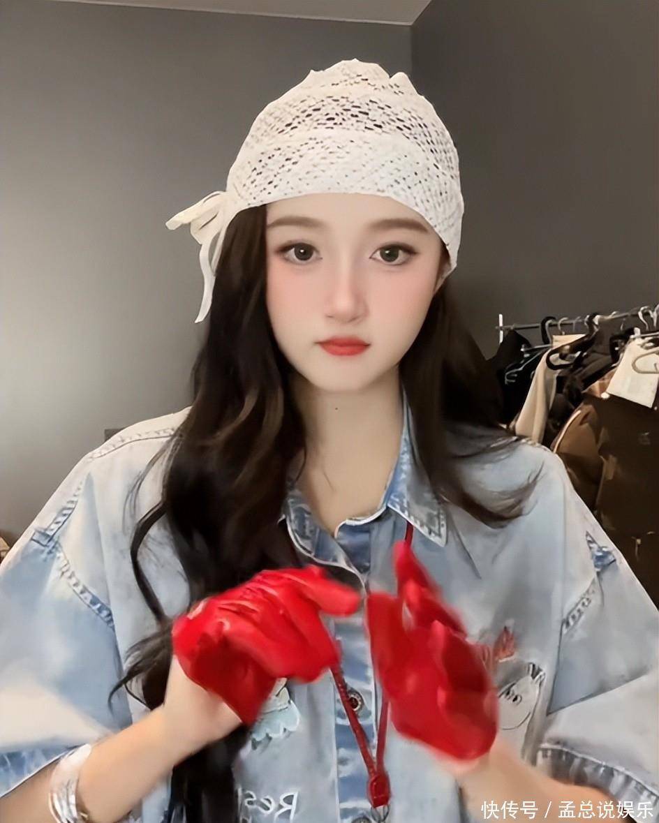 在合并个场景她又录制了一个动态,只不外是换了孤单衣服况兼把上一个的殊效给拿掉了,她衣服一件牛仔的上衣短袖蒙眬晦约的还能看到上头有涂鸦,手上戴着一副红色的手套,头顶上戴着一个白色的讳饰品。