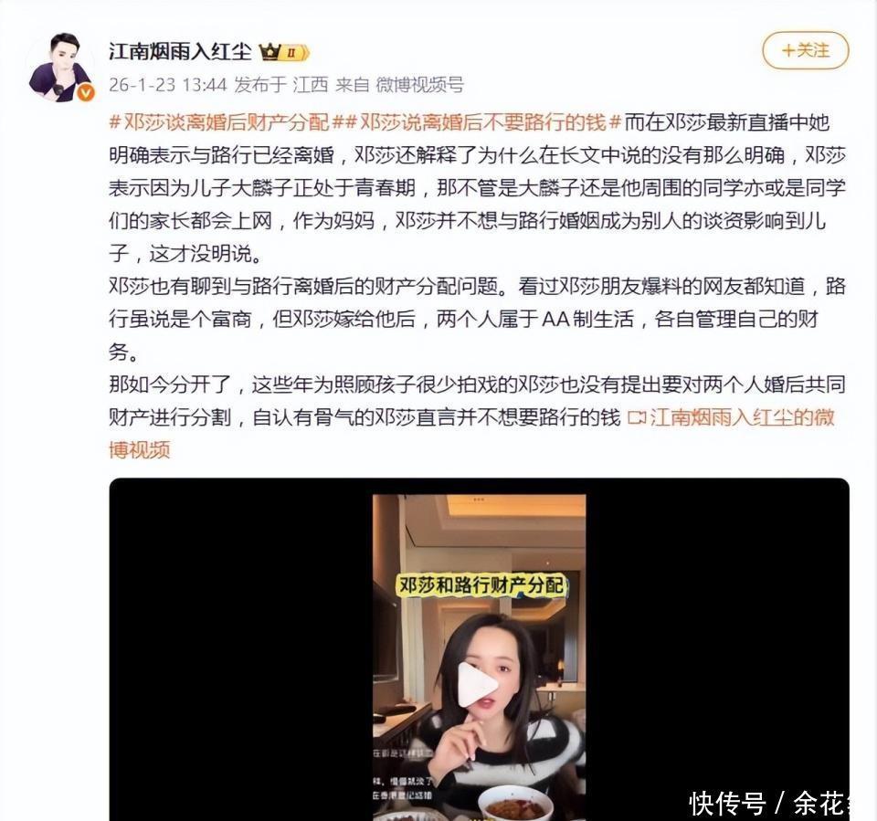 这里不得不提一句网友的辣评:“与其说是炫耀,不如说是避险。这一分钱不要的背后,是透顶切割的决绝。” 众人别忘了,网罗是有挂念的。此前路行曾卷入贿赂风云,辞任上市公司职位,那些看似渊博的生意帝国背后,约略早已感叹万千。 邓莎的“不要”,约略是这14年来最清亮的一次以为。 她不仅是在切割一段说合,更是在切割一种高风险的生涯时势。拿了他的钱,就意味着改日可能要不息被他的生意邦畿所遭灾,以至要不息忍受那种“拿东说念主手短”的精神矮化。 邓莎说:“这是湖南东说念主的气节。” 这句话听得我扬眉吐气。什么叫气节?气节不是受了屈身硬撑,而是我有智力为我的礼聘买单。 住在北京郊区的别墅里,她坦言这是路行的屋子,但她早已给我方买好了退路——一套全齐属于她我方、用拍戏片酬买下的屋子。 经济沉寂,从来不是为了向男东说念主解释什么,而是为了在摇风雨驾临时,你有底气推开那扇门,走进风雨里,却依然不仅不慢、毫发无伤。 她不要那25亿的“口惠而实不至”,她要的是一干二净、明显然白的下半生。 03为了孩子“演”了那么久,此次她思作念回我方 这场仳离大戏里,最让我爱重的,其实是阿谁情理:为了大麟子。 阿谁在《姆妈是超东说念主》里软萌懂事的大麟子,如今已是芳华期的少年。邓莎之是以忍耐不发,以至在长文里纤悉无遗,等于怕父母的撕扯成为孩子学校里的谈资。 这是一个母亲终末的辞谢防地。 但母亲的身份,不该是女性自我断送的桎梏。 邓莎在直播里说:“花我方的钱,才能思干嘛就干嘛。” 这句话,不仅是说给网友听的,更是说给阿谁依然在婚配里谨防翼翼的我方听的。 咱们看过太多朱门梦碎的例子,有的撕得一地鸡毛,有的为了抚养费对簿公堂。但邓莎提供了一种新的范本:体面开云「中国」Kaiyun官网登录入口,不是献艺来的,是实力撑起来的。 她让咱们看到,女性在婚配中的安全感,永恒不来自于丈夫的资产欠债表,而来自于你是否领有“随时离开”的智力。 婚配不错是逃一火所,但你我方必须是那艘能抗十级风波的船。 终末,思对悉数在婚配中感到茫乎的姐妹说一句: 岂论你是否礼聘AA制,请记取,钱不仅是货币,更是解放的选票。 像邓莎相通,勉力赢利吧。不是为了去朱门里受气,而是为了有一天,当爱情不再津润你时,你不错挺直腰杆说: “面包我有,你给我爱情就好。若是连爱情齐莫得,那请你闪开,别挡着我独自精彩。”