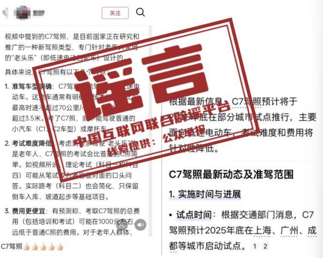 辟谣:“上海、广州等地试点‘老翁乐’C7驾照”虚假