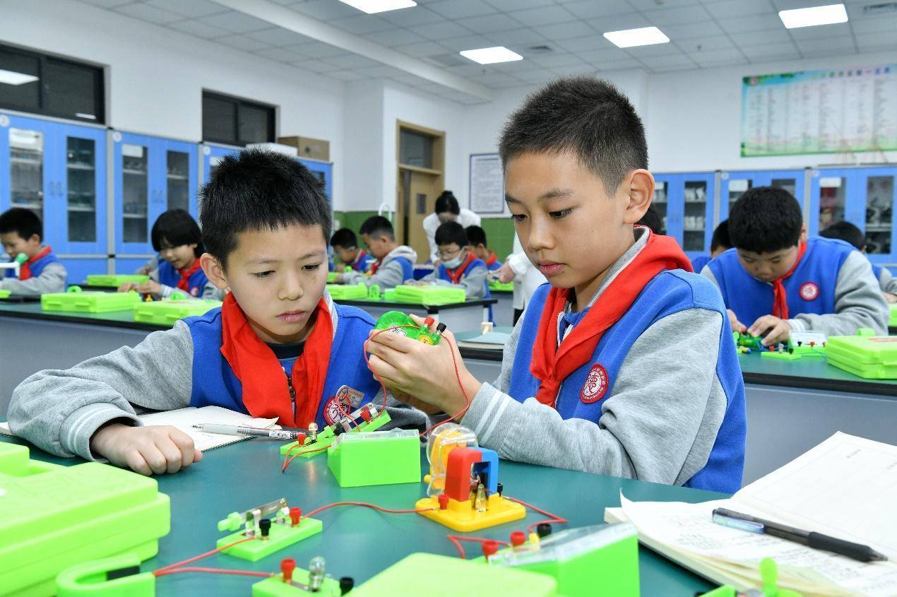 12月1日,学生在沧州高新区实验学校科技课堂进行电路科学小实验。苑立伟摄