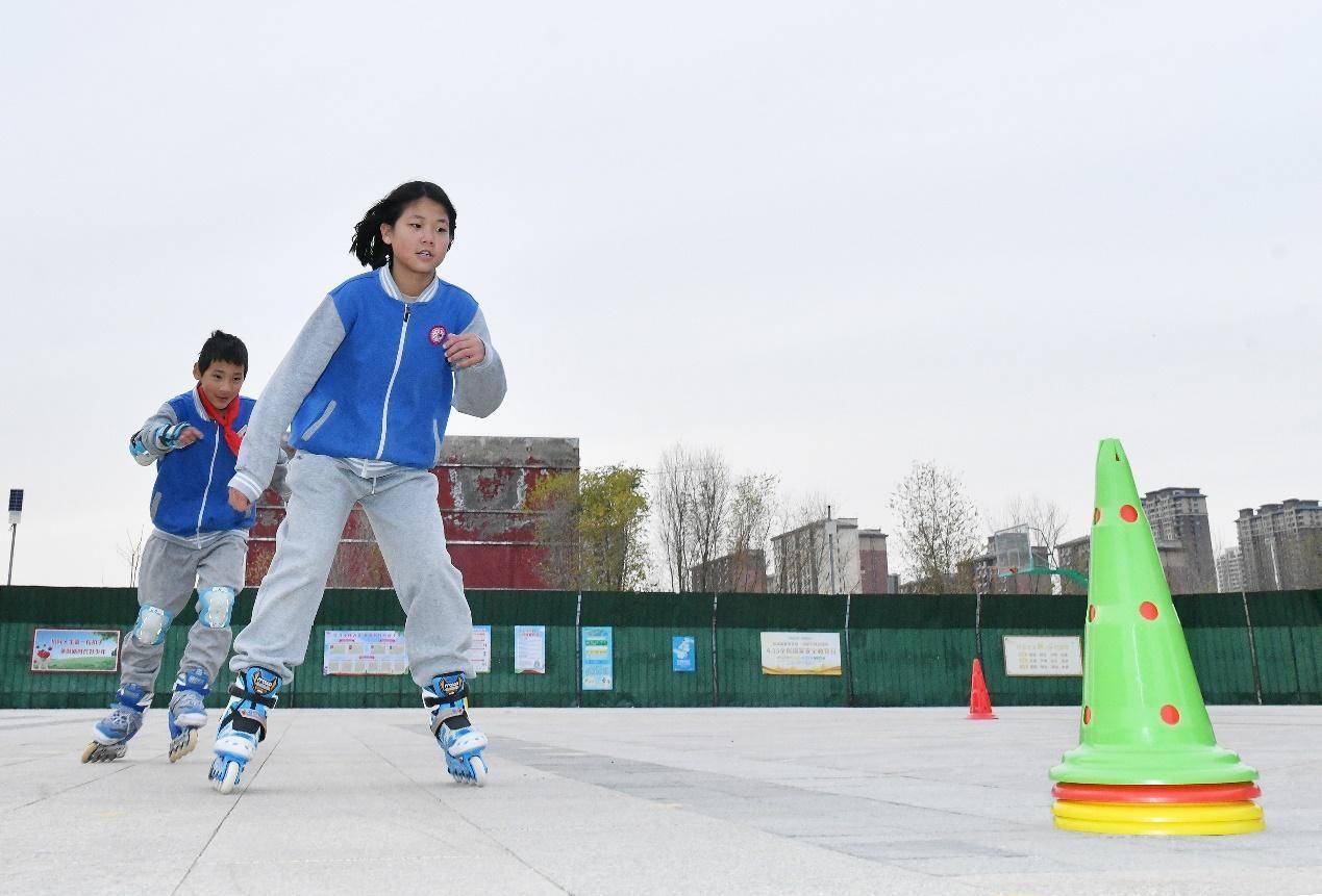 12月1日,学生在沧州高新区实验学校锻练轮滑。苑立伟摄