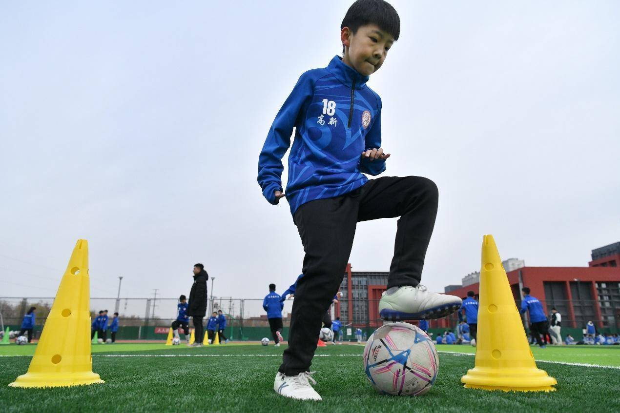 12月1日,学生在沧州高新区实验学校操场进行足球考研。苑立伟摄