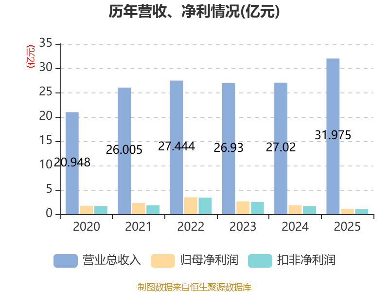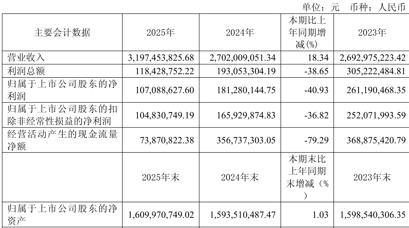 中证智能财讯富佳股份(603219)3月21日败露2025年年度论说。2025年,公司杀青商业总收入31.97亿元,同比增长18.34%;归母净利润1.07亿元,同比下落40.93%;扣非净利润1.05亿元,同比下落36.82%;筹划当作产生的现款流量净额为7387.08万元,同比下落79.29%;论说期内,富佳股份基本每股收益为0.19元,加权平均净金钱收益率为6.74%。公司2025年度分派预案为:拟向合座激动每10股派现0.5元(含税)。