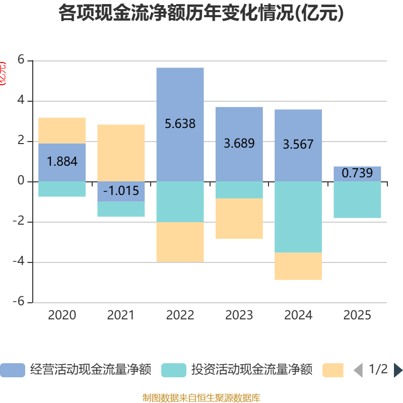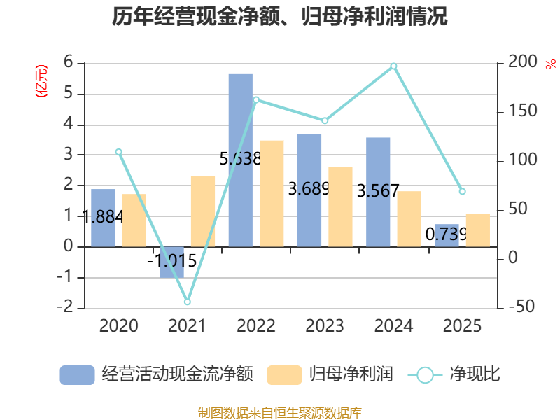 截止2025年,公司筹划当作现款流净额为7387.08万元,同比下落79.29%;筹资当作现款流净额-17.52万元,同比加多1.35亿元;投资当作现款流净额-1.82亿元,上年同时为-3.54亿元。