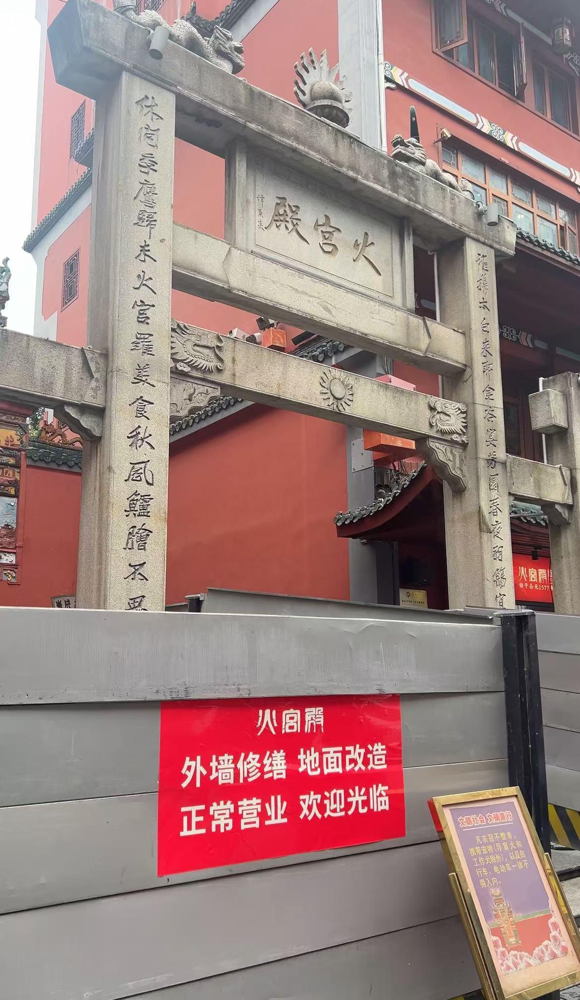3月11日,潇湘晨报记者实地访谒火宫殿鼎新装修现场,记者在现场看到,火宫殿总店门外已拉起围栏,但仍有不少搭客前来打卡,土产货市民也因意思而立足检讨。